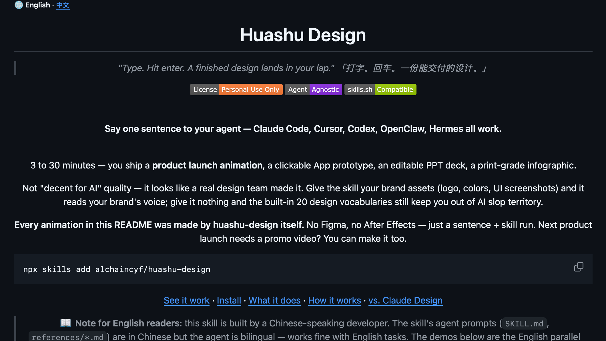 My takeaway is simple: Huashu Design is one of the more interesting open-source design-adjacent repos I have seen lately because it treats design as a workflow with inputs, taste, and review loops, not just as an image-generation stunt. If you build products and care about how fast you can move from idea to something presentable, this is worth studying closely.